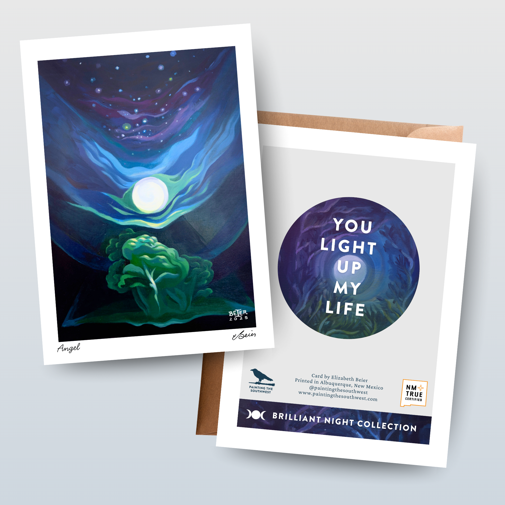 Inspired by the luminous July Full Moon, “Angel” captures a moment when moonlight connects the Heavens and the Earth. The energy this print brings to a space is one of mindfulness and connection to one’s spiritual self.
