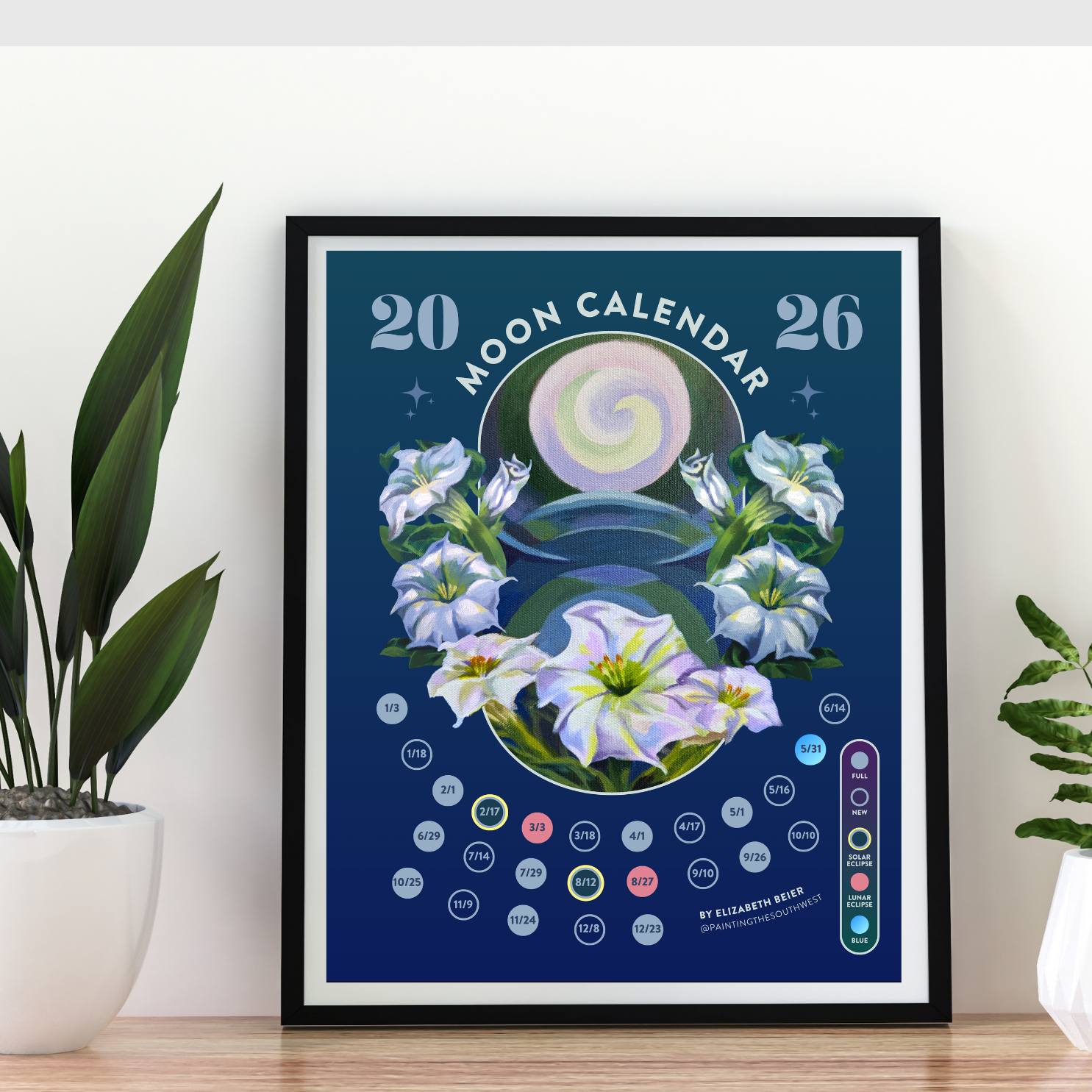 The blue light of the November full moon honors the times in life when we need quiet, lonely silence. Sometimes the opinions and directions of others drown out one’s own inner voice. One of the beautiful things about New Mexico is the vast expanses of empty space, with subtle pathways leading to the horizon. Bring this art into your home to remember to listen to your own inner stillness.